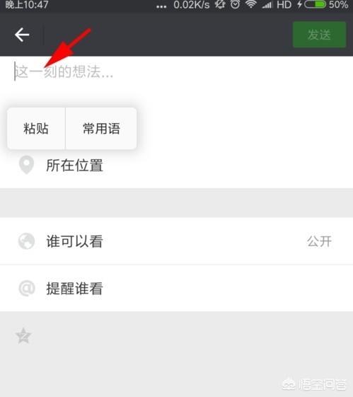 步骤4、进入到朋友圈编辑界面,点击发送,完成转发;