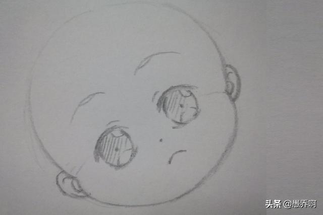 2、在圆的边边上修出人物头型和脸型轮廓,然后再画出人物五官。