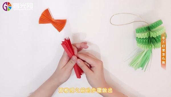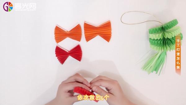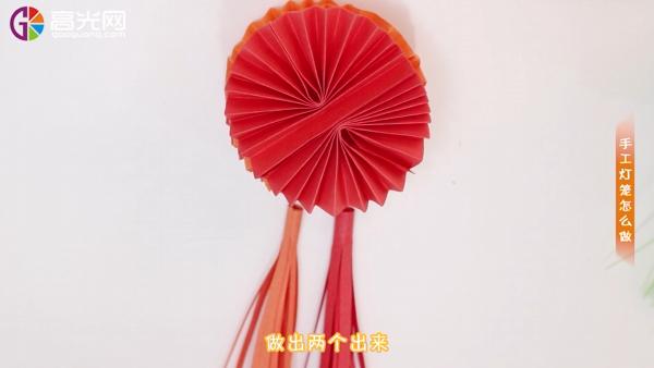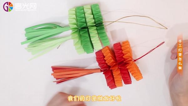 总结:在重复折扇形状的时候一定要折叠整齐,灯笼穿线的时候流苏不要忘记了。