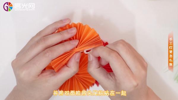 5、然后用胶将头尾粘贴在一起,使得小扇子环绕成圆形扇,四个都粘好;