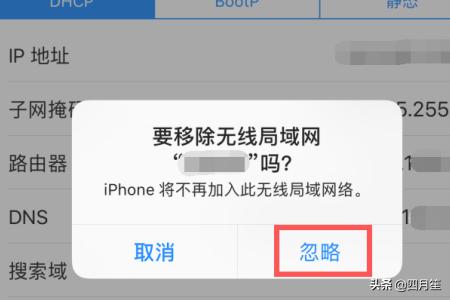 5系统将弹出一个提醒窗口,询问是否移除当前无线网络,点击忽略