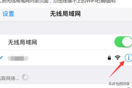 3进入到无线局域网列表页面,点击连接不上的WiFi右侧i图标
