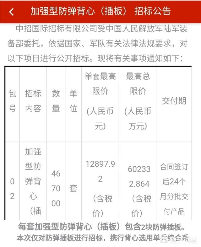 使用各种符合材料制成防护板,可以有效地抵挡子弹的冲击,毕竟多少层凯夫拉纤维,都很难和实打实的装甲板对比。日前,中国陆军在公开装备采购信息网络上发布消息,即将采购93万套通用型防弹背心插板,单价接近8000元。以及46.7万套增强型高级防弹衣的防护插板,单价超过12000元。如此大量的采购,几乎能覆盖中国陆军大部分的一线作战人员,计划得到执行之后,解放军的单兵防护能力将会达到世界一流的水平。