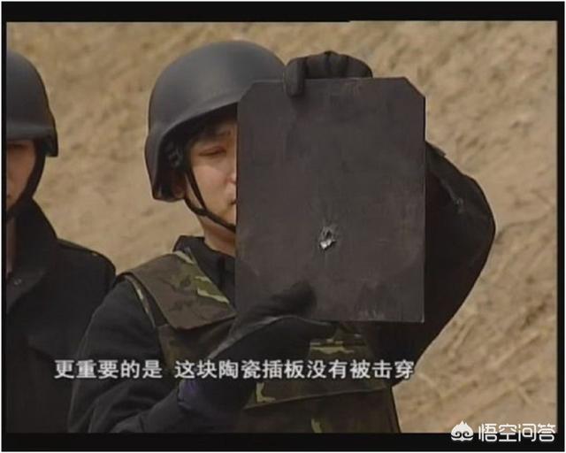 而解放军的依托碳化无机材料制作的15mm厚度的防弹插板,据悉在测试中,面对5.8mm钢芯弹的打击时,单发命中仅会出现低于25mm深度的凹陷,即使2到3发连续命中一个区域也不会穿透,只是出现裂纹,但并不会影响周围的防护性。考虑到实战情况几乎不可能出现多发子弹打中一点的情况,可以认为新型防弹插板可以有效抵抗5.8mm钢芯弹的射击。值得注意的是,5.8mm钢芯弹就是被用作穿甲弹使用的弹种,和其他铅芯弹比起来穿透威力更强,射击那些没有防弹插板的防弹衣几乎是一打一穿。国产防弹插板能够经受住5.8mm钢芯弹的挑战,说明技术水平已经到了相当高的程度。