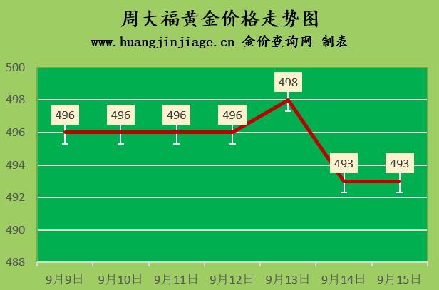 周大福黄金价格493元/克(持平),六福黄金价格493元/克(持平),周生生黄金价格492元/克(涨1元),金至尊金价493元/克(持平),谢瑞麟金价492元/克(持平),上海老凤祥黄金价格499元/克(持平),上海老庙黄金价格493元/克(持平),菜百金价489元/克(跌3元),周大生金价483元/克(持平),上海中国黄金价格496元(跌2元),金大福金价489元/克(持平),潮宏基金价493元/克(持平),周六福黄金价格494元/克(持平)。