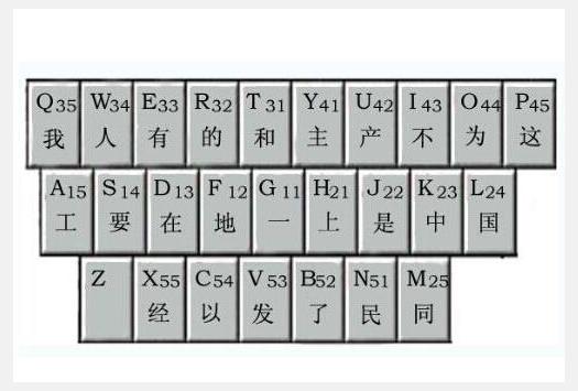 31T,禾竹牛旁卧人立;32R,白斤气头叉手提;33E,月舟衣力豕豸臼;34W,人八登祭风头几;35Q,金夕犭儿包头鱼。