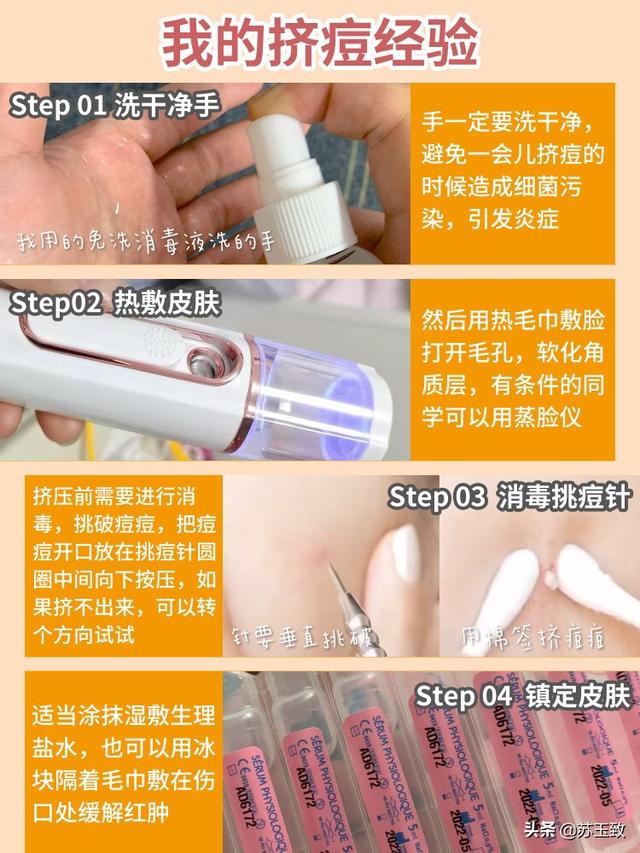 手一定要洗干净,避免一会儿挤痘的时候造成细菌污染,引发炎症