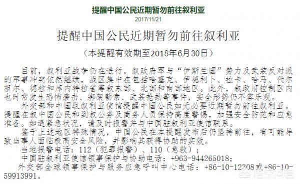 而之后又将日期延长到今年6月底,也就是在6月底之前,不建议中国公民去叙利亚。
