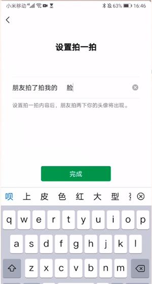 然后点击拍一拍选项,这时输入文字再点击完成就可以了。