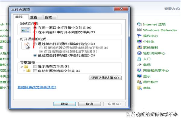 2、在控制面板中,找到文件夹选项这个选项。你也可以直接在资源管理器中打开工具,在最下面的文件夹选项中打开。