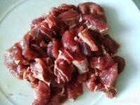 牛肉剔除筋膜,切成小方片。