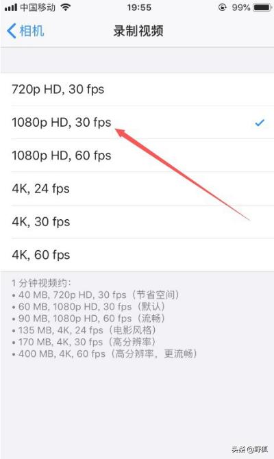 4.进入录制视频设置之后,可以看到帧数默认的是“1080p HD,30fps”,如图所示。