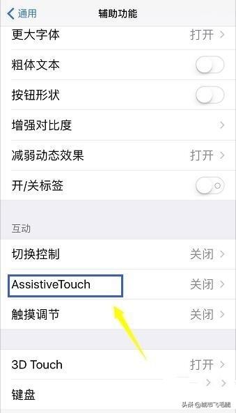 4、在辅助功能界面点击 AssistiveTouch选项,如下图所示