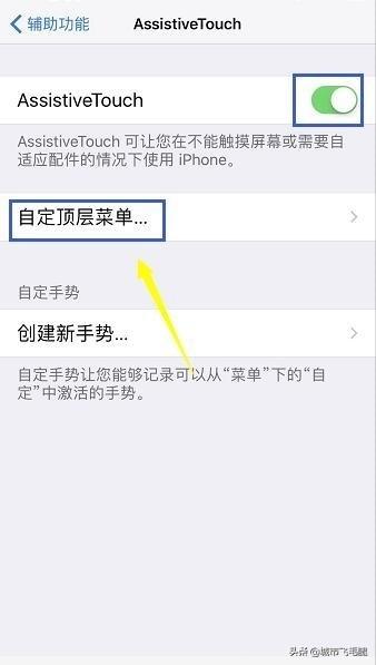 6、开启AssistiveTouch选项后,点击自定顶层菜单。。。选项,如下图所示