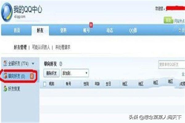 三、在单向列表好友列表中,如果你们以前是好友,现在出现在单向好友列表中,那么就可能是对方将你拉黑了,他的QQ号准会出现这个单向好友里,就是表明你加了他,但他没有加你。