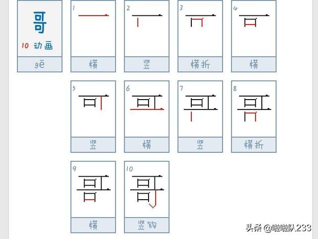 2022-07-07 05:51 阅读: 评论:“哥”总共有10画,第三笔是横折。