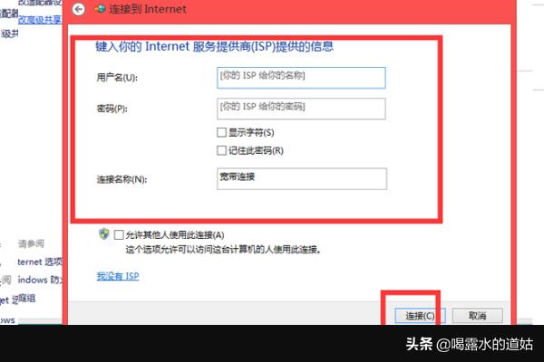 8、然后出现的界面中,输入账户和密码,单击“连接”即可上网。