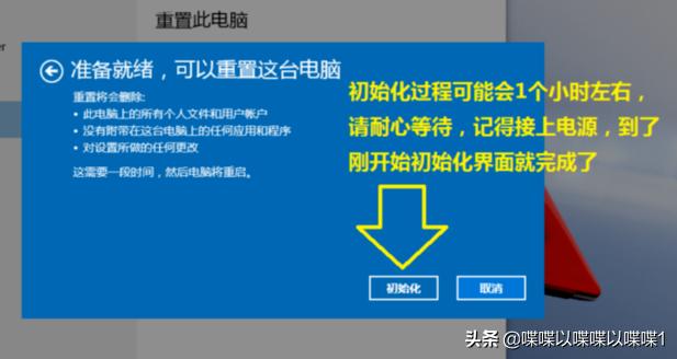 七、点击“初始化”,接下来等待电脑完成恢复默认设置即可。