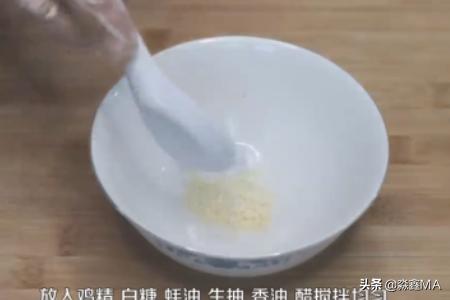 3、在碗中放入鸡精、白糖、蚝油、生抽、香油、醋,搅拌均匀。