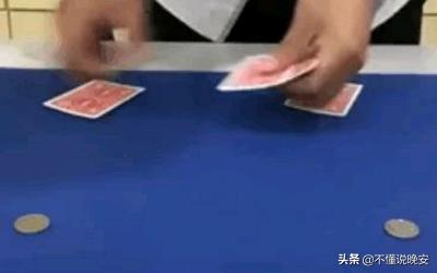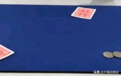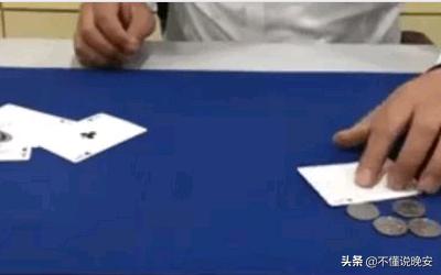 然后,将其中两张牌翻开,就会看到一张牌下面没有硬币,另一张牌下面有两枚硬币