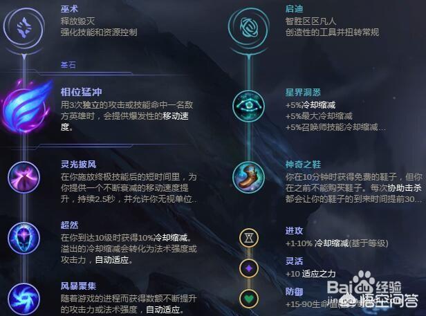 星界洞悉:减少5%召唤师技能、普通技能和装备冷却,而且还能溢出5%cd,就是说最高45cd,真正的折磨王。