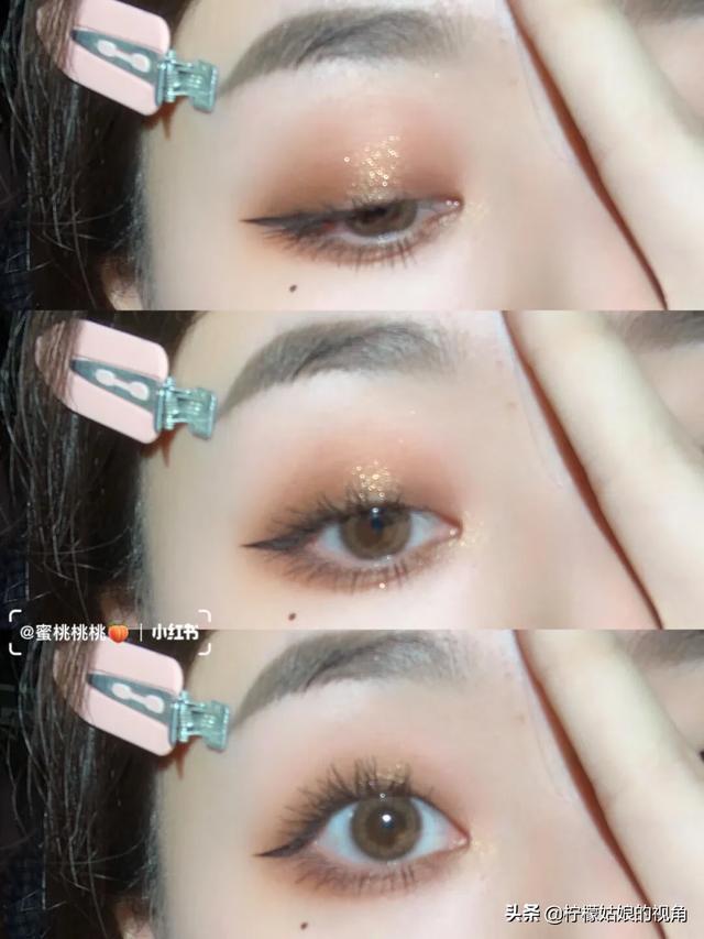 然后①夹好睫毛②画内眼线③刷睫毛打底和睫毛膏
