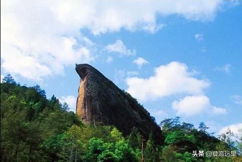 鹰嘴岩位于山北天心景区,从古崖居往西行约数百米,便可看见一座形似雄鹰的巨岩。鹰嘴岩是一座浑然一体的巨岩,光秃秃的岩顶,东端向前突出,尖曲如喙,宛如一只展翅欲飞、搏击长空的雄鹰。尤其是钩形的“鹰嘴”上生长着一株古老的刺柏,给鹰嘴岩增添了神韵和飘逸,令人惊叹称绝。因此,她又被称为是武夷山最奇特的岩峰。度假区距鹰嘴岩约6.5公里