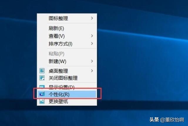 1、打开WIN10系统界面,单击鼠标右键,在弹出的菜单中选择个性化。