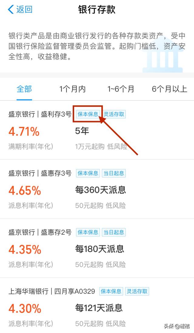 支付宝上理财产品中有3种不同类型的产品,有保险类,银行类,券商类,其中银行类风险最低,起购门槛最低,只要50元起,受《存款保险条例》保护,当前年化收利率,5年期年化收益最高可达4.7%,保本保息,灵活存取。