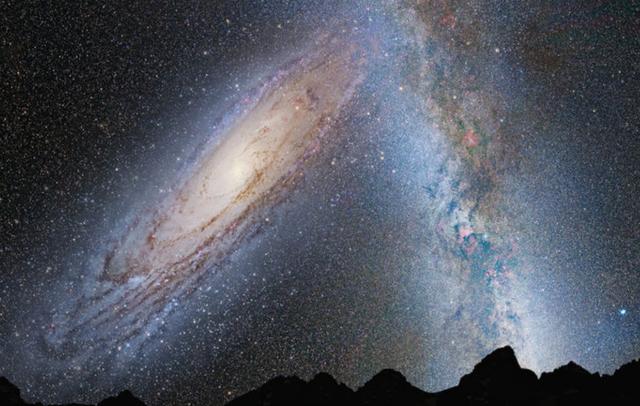 因为我们跟着银河所有天体一起跑,当然看不出相对速度。不过天文学家还是有办法的:光谱分析。根据多普勒效应,离我们远去的天体将红移,光线发红,离我们越来越近将蓝移,光线发蓝。于是,当天文台把望远镜对准仙女座大星云的时候,会发现她正在蓝移,以每小时七十万公里的速度靠近我们,再过36亿年,银河系和仙女座大星云就要合起来过日子了。