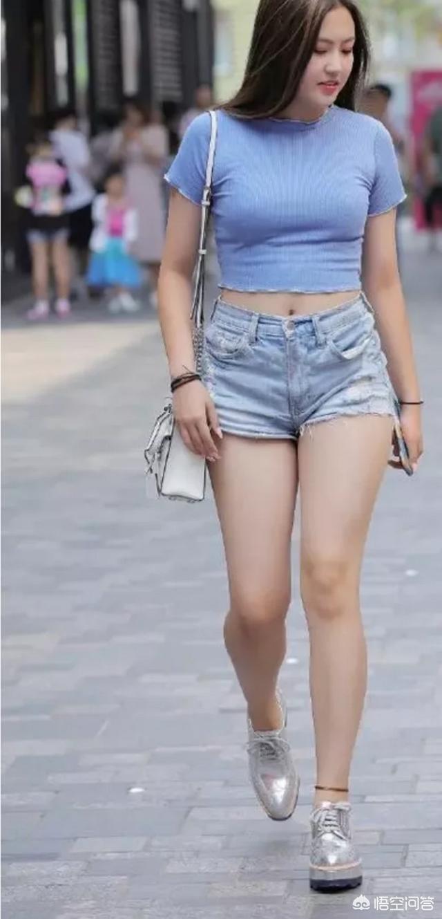 2.蓝色短袖和热裤的组合非常普通了吧,但经过小姐姐这么一穿,赋予它不同的特质。