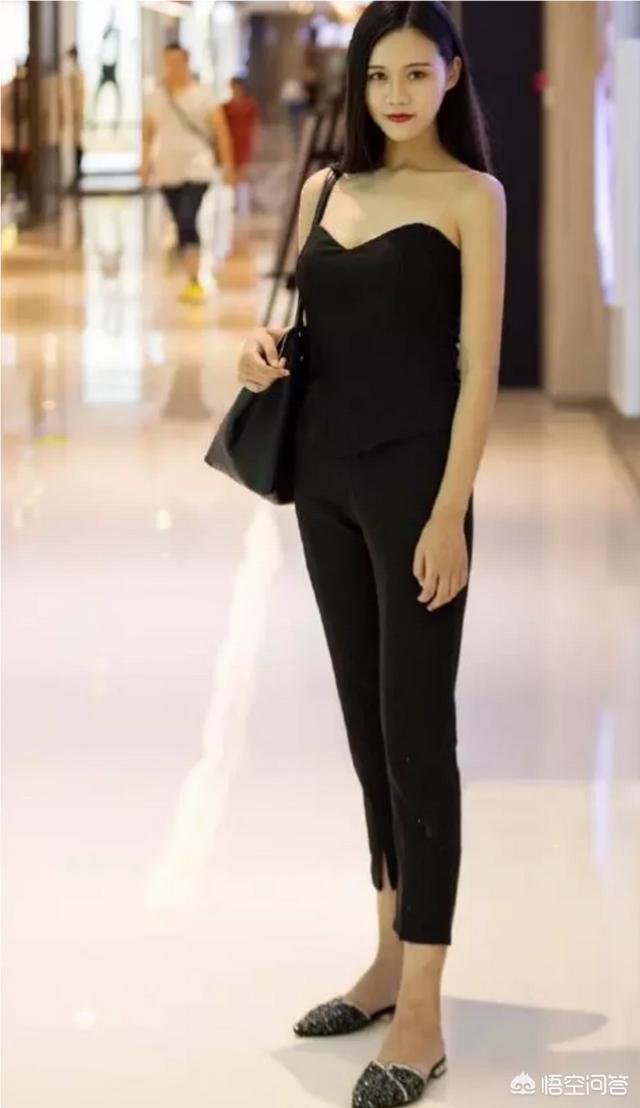 1.这位小姐姐一身全黑的打扮很修身,还高级感十足。抹胸的设计秀出香肩美背,九分裤显得干练利落,看起来十分养眼。