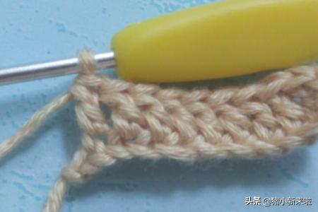 2、鞋底第一圈(前半圈):拉3个辫子针(就是13针了),返回在倒数第4针里钩织1个长针,然后在钩织8个长针,在第一针里钩织7个长针,这样就完成了鞋底第一圈前半圈的钩织。