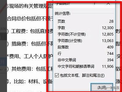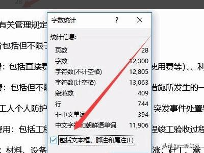 4、如果我们的文档有“文本框”与“脚注、尾注”的话,可以勾选下面的复选框,这时也会一起统计。