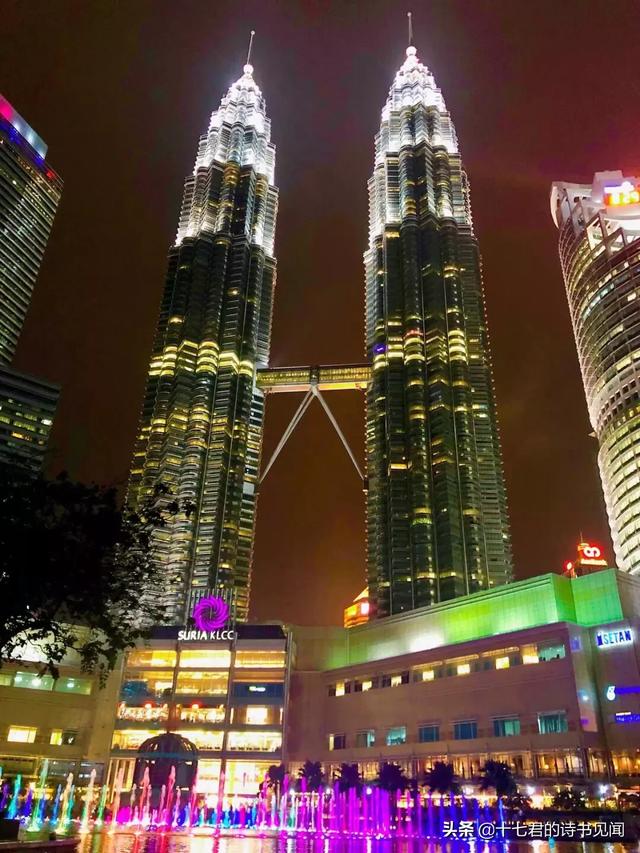 双子塔的夜景尤其好看,夜幕中的双子塔通体明亮,如同两把燃烧的光剑刺破长空。双子塔前还有音乐喷泉,可以静静地坐在湖边长椅上欣赏。