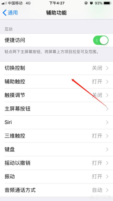 3、在辅助功能界面,找到并点击【辅助触控】;