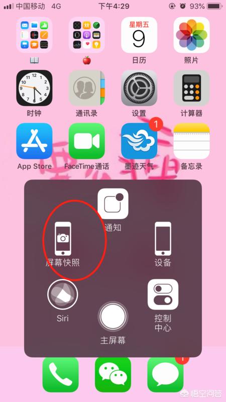 7、回到主屏幕,点击桌面上的小纽扣,可以看见【屏幕快照】,点一下便可以截屏了。