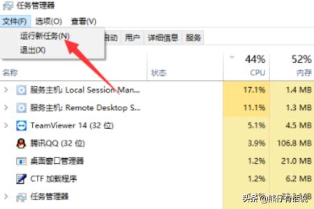 4、在这里我们点击任务管理器,点击文件下的新建任务。