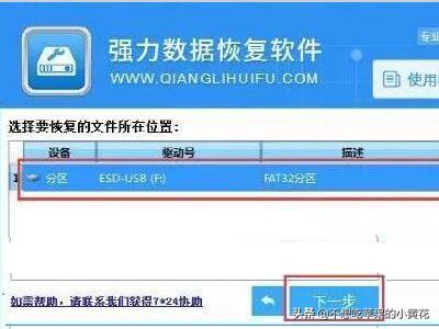 4、接下来选择要扫描的分区,进行U盘数据恢复,选择可移动磁盘(U盘),然后点击“下一步”。