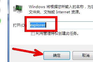 6.在创建新任务的输入框中输入“explorer”,然后点击确定。
