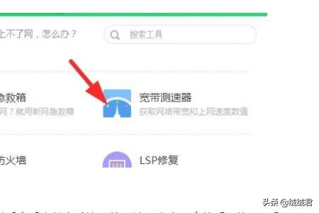 2、找到【宽带测速器】对当前电脑的网速以及宽带进行测试,根据提示对网速进行测试。