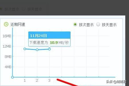 4、点击下方的网速显示选项可以选择【按天显示】查看连接网速最近连续几天的网速,波动程度越大网速越不稳定。
